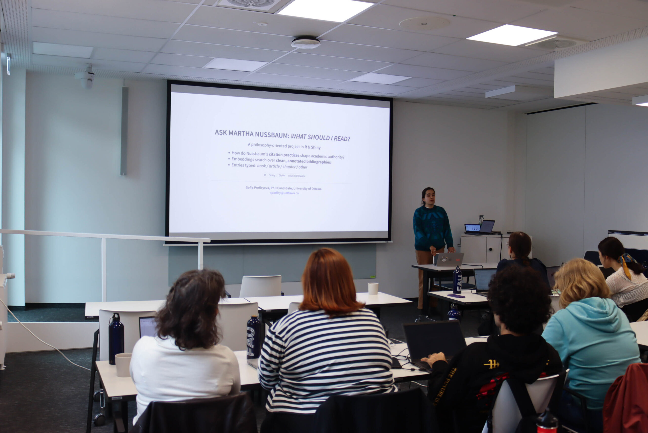 The workshop series covered a wide range of topics in digital humanities and gender research. Michaela Mahlberg introduced participants to the foundations of Digital Humanities, while Sabine Lang presented Open Culture: Modelling the Germanisches Nationalmuseum in Wikidata. Anastasia Glawion explored Gendered Communities and Character Networks: Social Network Analysis of Fan Fiction, and Marianna Gracheva discussed Keyfeature Analysis for Gender, Style, and Register Studies. Nathan Dykes led a session on Exploring Gender in 19th-Century Fiction with Concordance Analysis with an emphasis on CLic, and Katrin Rohrbacher examined Who is Doing What to Whom? Analyzing Gender Biases in Large Language Models. The Visual Abstracts Workshop was conducted by Ismail Barakat. Andreas Wagner first introduced participants to SpaceLog, a tool for exploring location-based data. Later, Dominik Kremer and Andreas Wagner jointly led Tracing Qualities of Stay: Analysing Place-Based Voice Recordings, connecting digital methods with embodied experiences of space.