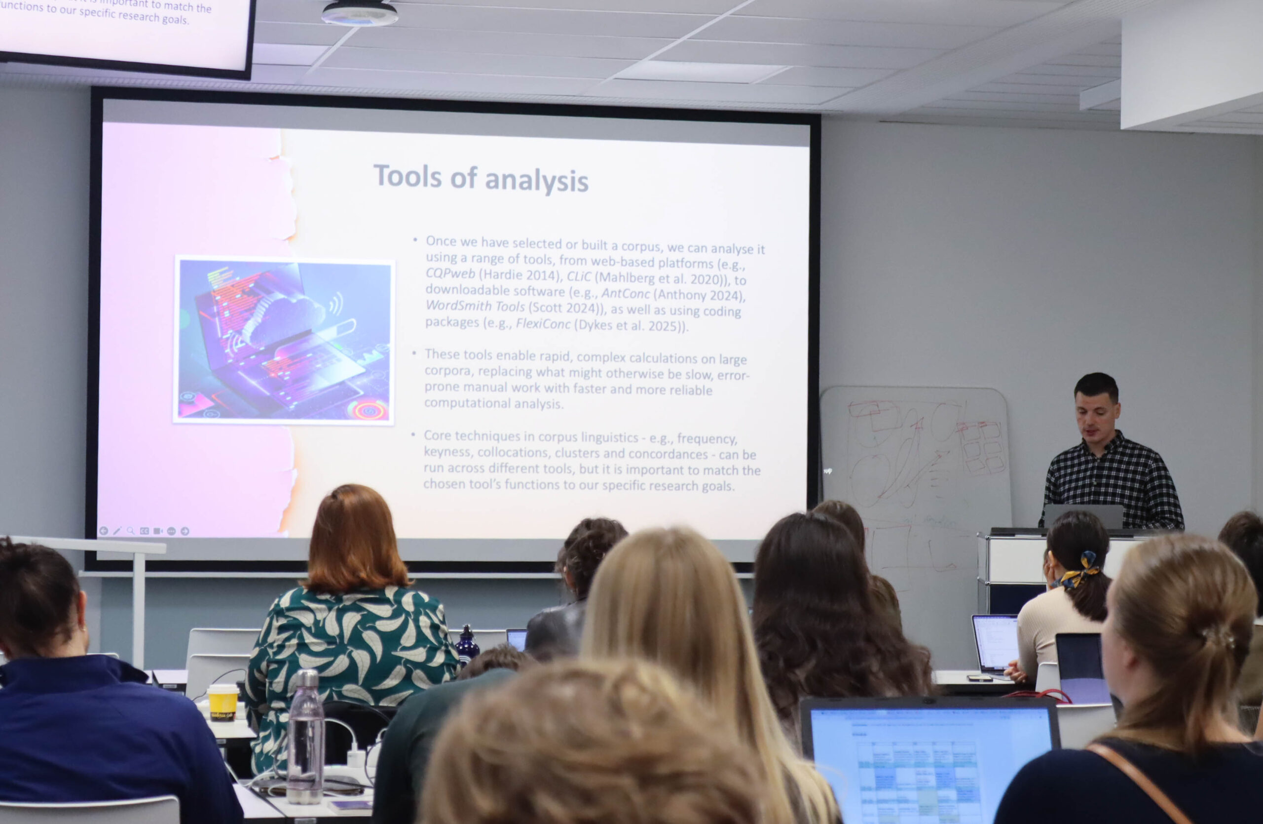 The summer school featured insightful keynote lectures by Anna Foka on AI and Heritage: Critical perspectives on AI for the Archives, Libraries and Museum sector, Mareike Schumacher on When we focus the uncommon, the common will come in automatically! Won’t it? Corpus compilation and gender analysis in Digital Humanities, and Gavin Brookes on Corpus linguistics for gender and language research: Key concepts and critical reflections.
